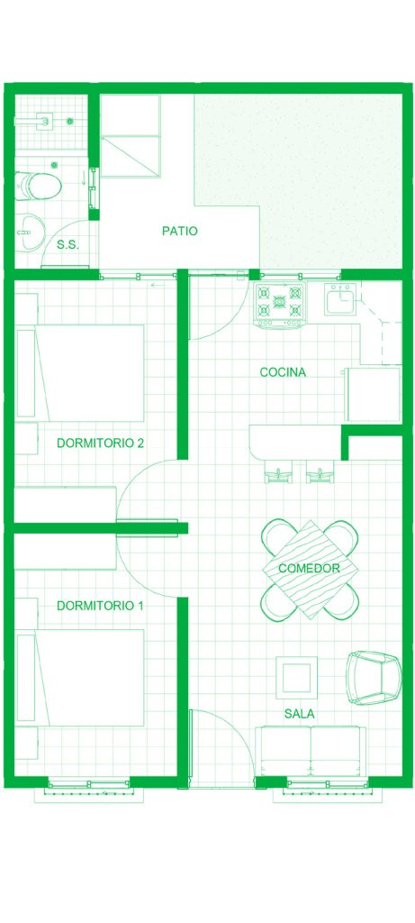 Frente 6 m – Fondo 10 m / Construcción 52m2